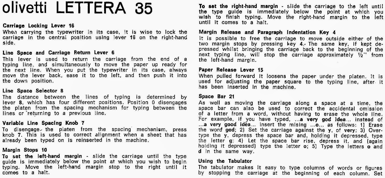 Olivetti Lettera 35 Portable Typewriter and Manual