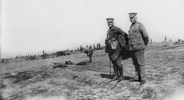 Lieutenant-Colonel Bryant, right, at a camp on the Aegean island of Lemnos in April 1915.