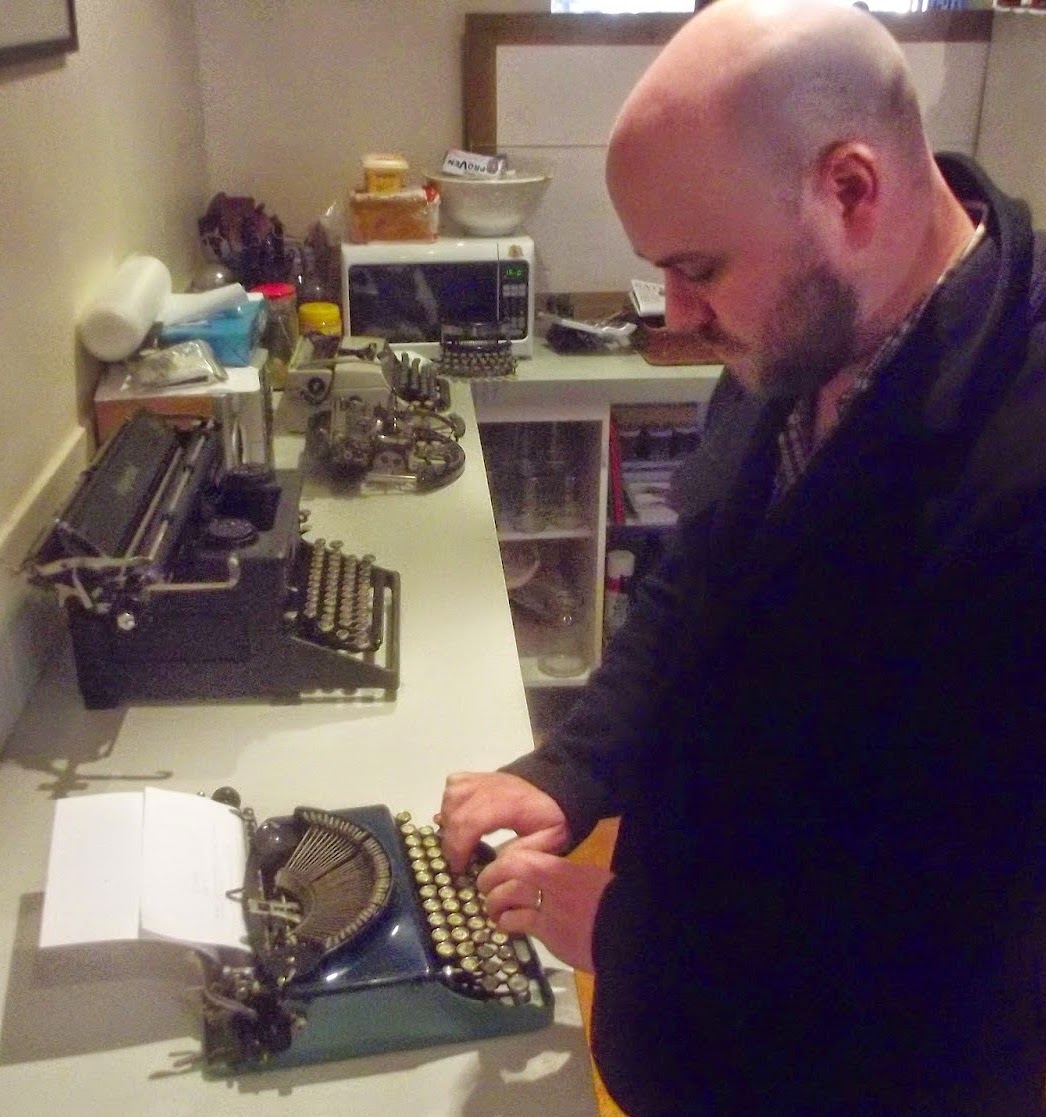 Sadly, Canberra will lose two typewriter collectors next week when Ray Nickson (above) takes up an appointment as a lecturer in law at the University of New England in Armidale. Ray will depart with his American-born wife Alice and their young daughter Cynthia - not to mention their large collection of Depression Era and other gorgeous old typewriters. They (that is the Nicksons and the typewriters) will be sorely missed around here. Canberra's population of Typospherians will drop by half.
