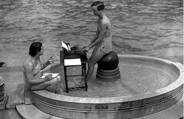 Dorothy Parker, typing on a Royal, and Alan Campbell at their farmhouse
