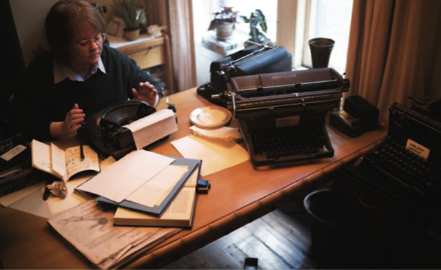 A late contender for the much-coveted 2018 Typewriter Movie of the Year (Oscar nominations voting closes on January 14) is Can You Ever Forgive Me?, the biographical comedy drama based on Lee Israel's 2008 memoir of the same name. It stars Melissa McCarthy as Israel and follows the failed writer's fraudulent efforts to supplement her income by forging letters from deceased authors and playwrights. We saw the movie last evening and found it well-acted and entertaining, though the ultimate treatment handed out to Israel-McCarthy's typewriters was a major downer for me: